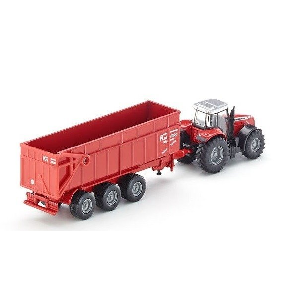 Traktor Massey Ferguson z przyczepą Wysokiej klasy model traktora Massey Ferguson z ruchomą przyczepą ze stabilizatorem i zdejmowaną kabiną to idealny prezent dla małego wielbiciela motoryzacji. Produkt wykonany został z metalowych i plastikowych części z zachowaniem szczegółów pojazdu rzeczywistego. Dodatkowo produkt posiada obrotowe koła i gumowe opony, które pozwalają na swobodne poruszanie po różnych powierzchniach. Wiek: 3+ Wymiary opakowania: 22,6 x 7,5 x 5,4 cm